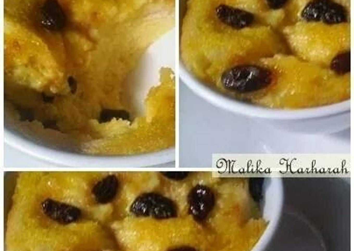 - Steam it about 10-15 minutes. Check it, If the bread pudding were raising and no liquid left, means it is done (: