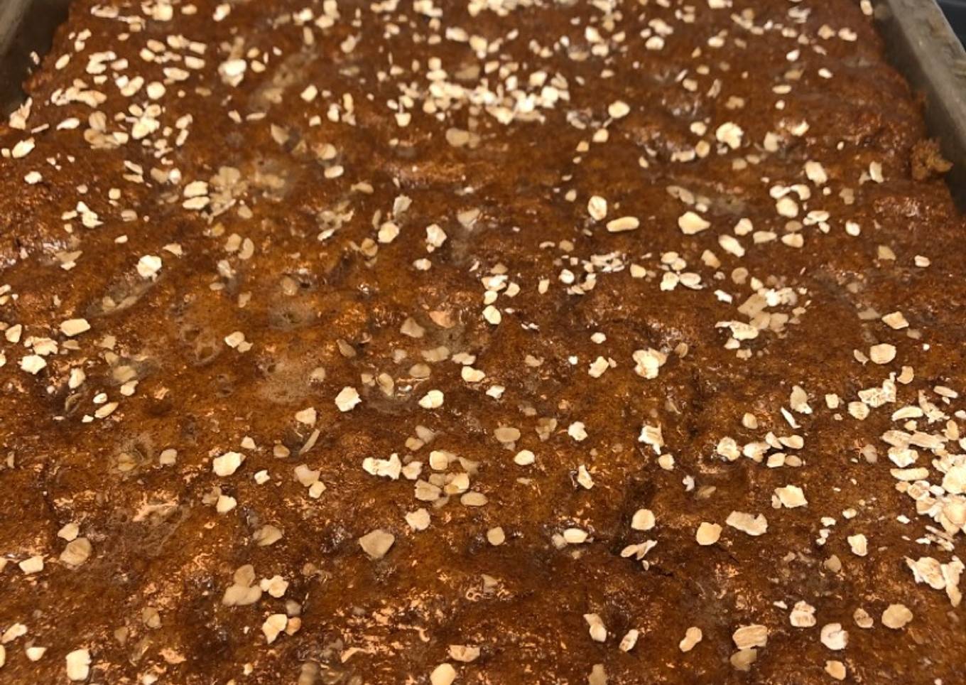 - When it comes out, I mix the honey with the last 4 tbsp melted butter and baste the entire top then sprinkle it with the oats.