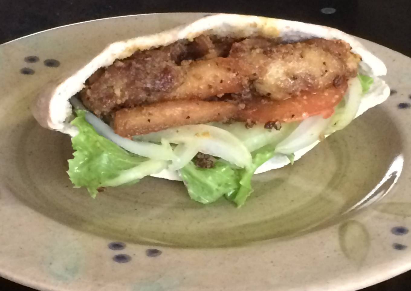 - Remove your pita bread from the oven after 4 minutes, open the bread and add one leaf of lettuce, add the onion, the cucumber, the tomatoes and the chicken and voilĂ it's ready! Enjoy!