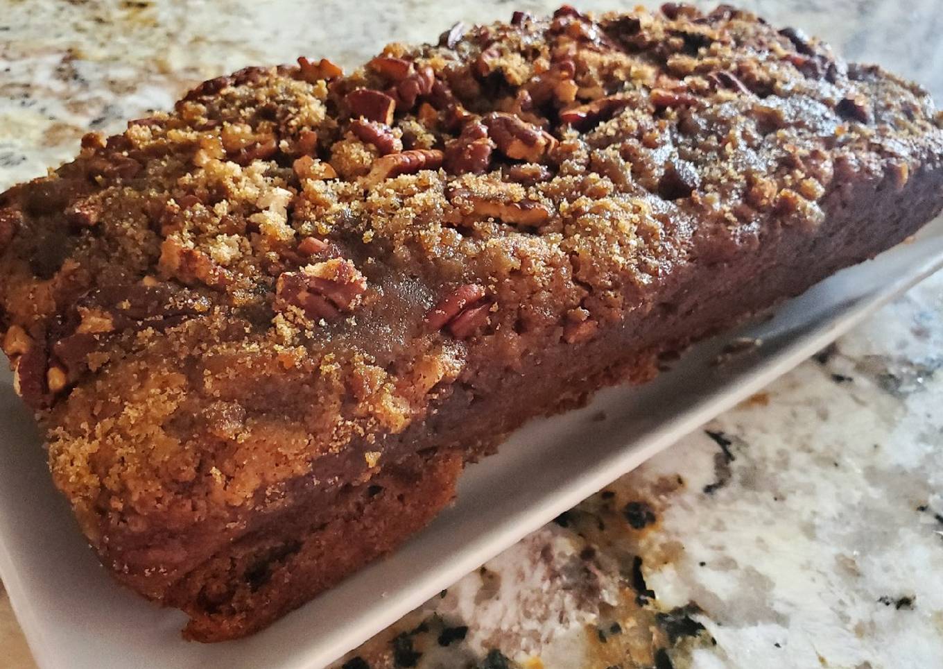 - In a small bowl add cinnamon,1/4 cup sugar and chopped pecans. Mix together. This will be used to garnish the top of bread mixture once poured in bread pan.
