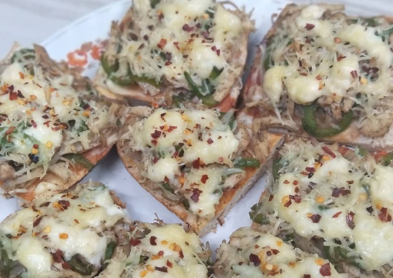 - On top put grated cheese and sprinkle some chilli flakes.