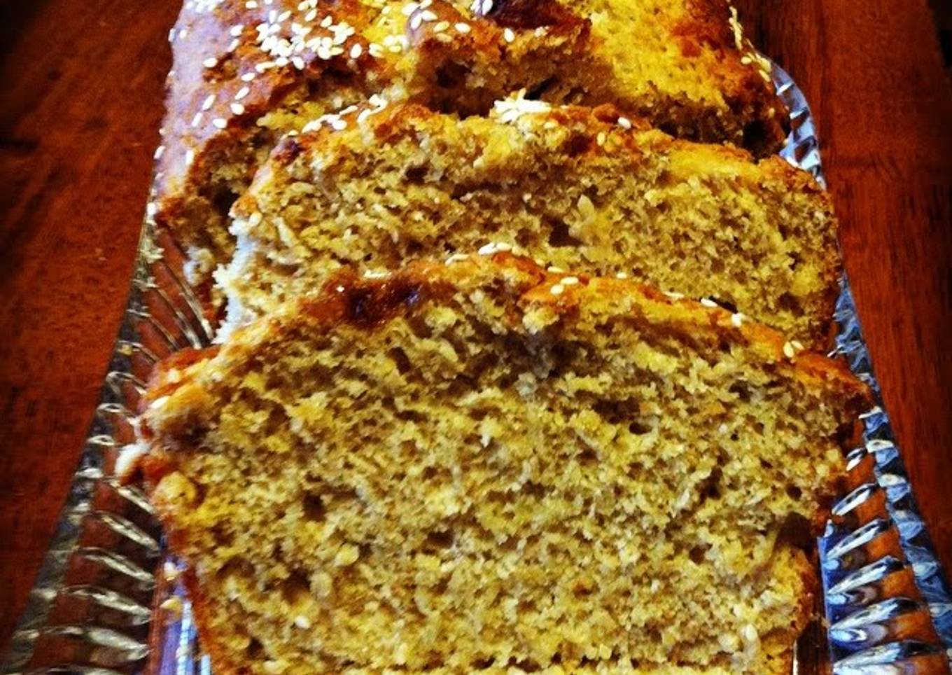 - Drizzle with olive oil and sprinkle with sesame seeds and salt. Bake for 55-60 minutes. Cool 10 minutes on wire rack before removing from pan.