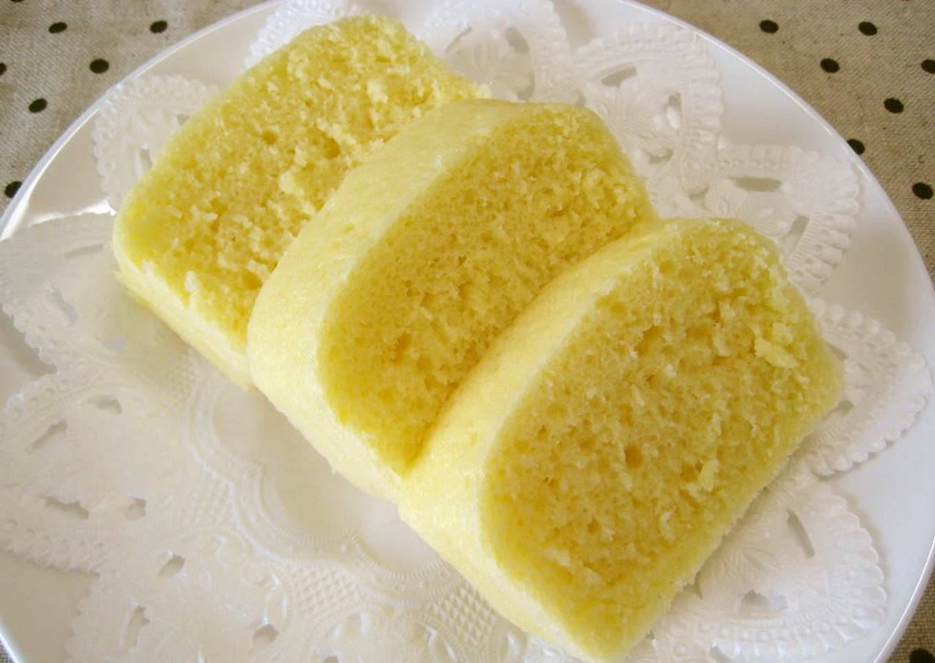 - Put the batter into a microwaveable dish and microwave without plastic wrap at 500 W for 5 minutes, and it's complete.